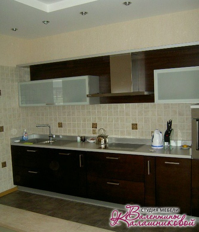 Кухня «Эльба» с рамочными фасадами из натурального дерева сочетает в себе цвет венге и современный дизайн фасада. Фасад выполнен из массива дуба, обработан полуматовым лаком. Применение матового стекла в фасадах -витринах, делают кухню легкой и современной. Возможно также применить стекло или витражи, выполненые с применением фотопечати, пленочного рисунка, пескоструйной обработки и т. д. В нашей студии мы поможем создать Вам кухонный гарнитур по Вашим размерам, знание размерного ряда фасадов, позволит нам с легкостью уйти от стандартов. Мы также сможем предложить Вам фурнитуру различных производителей Италии и Германии.А для экономии Вашего времени мы укомплектуем кухонный гарнитур бытовой техникой и сантехникой по Вашему пожеланию.